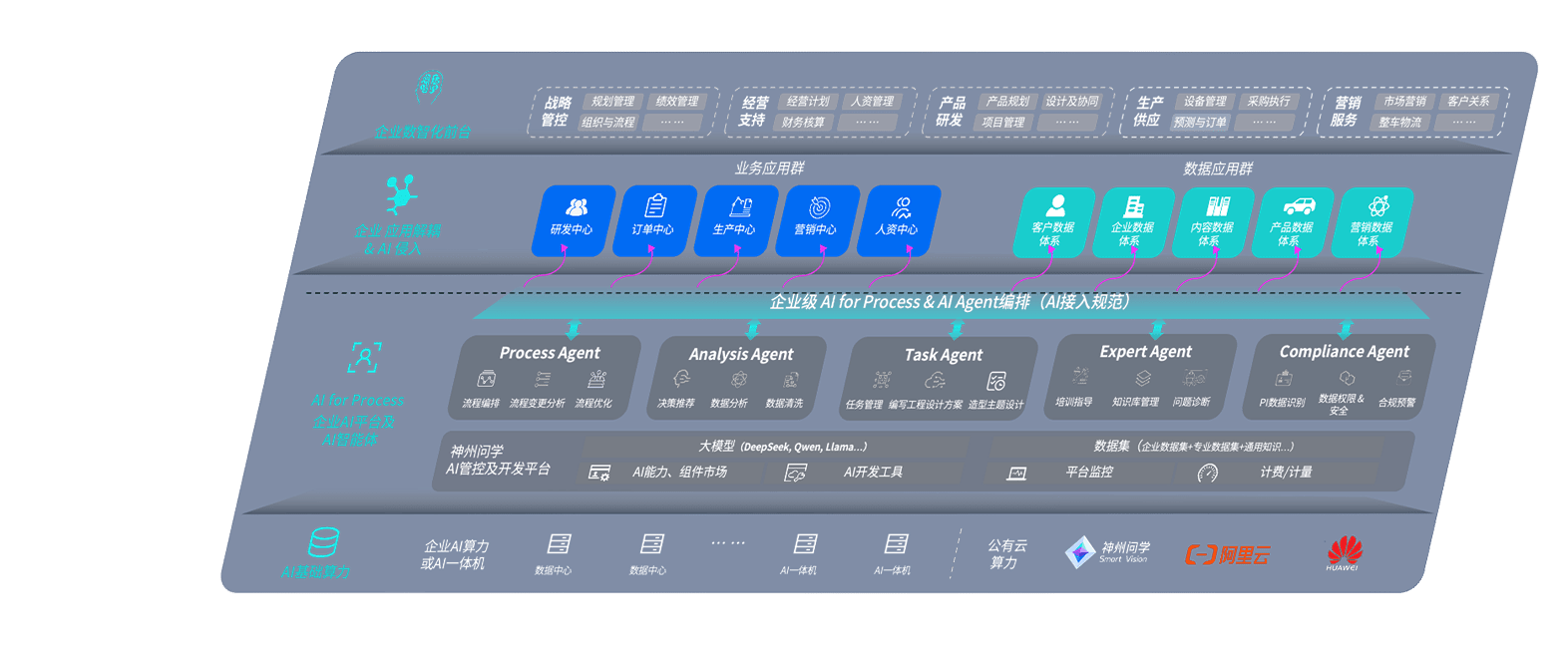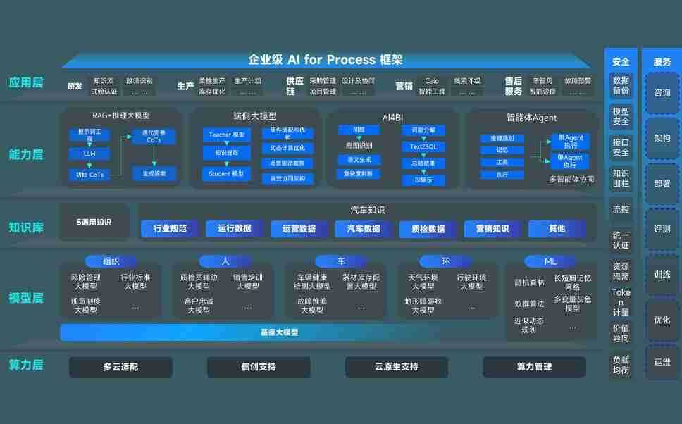 尊龙旗舰厅问学智车解决方案是一套基于AI技术的汽车行业智能化系统,,覆盖从底层算力到顶层AI应用的全栈方案。。。。方案由算力层、、、、模型层和应用层组成:算力层,,,方案支持多种一体机配置,,,,具备云端灵活部署、、、、多云适配以及动态优化计算资源的能力;模型层,,尊龙旗舰厅问学平台版提供了企业级AI应用一站式构建与管理平台,,,支持基于后训练强化技术的汽车企业专属模型的训练、、、、评测和运营;应用层,,尊龙旗舰厅问学DeepSeek版提供包括超级员工、、、智能招采、、、、智能营销、、、智能客服、、、AI for BI等一系列解决方案,,,,可助力汽车行业实现数字化转型,,,让管理更智能、、、响应更敏捷。。。